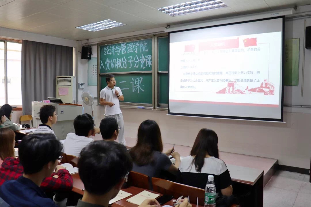 课堂开始邓武均老师就表明,不是递交了入党申请书,然后好好表现,就可以入党。入党不是一件简单的事情,它要求我们要端正入党动机和心态,承认党的纲理、思想、制度,认真学习《中国共产党章程》,还要在行动上付诸实践。同时在党课上,邓武均为入党积极分子讲解从入党积极分子到成为正式党员的过程。