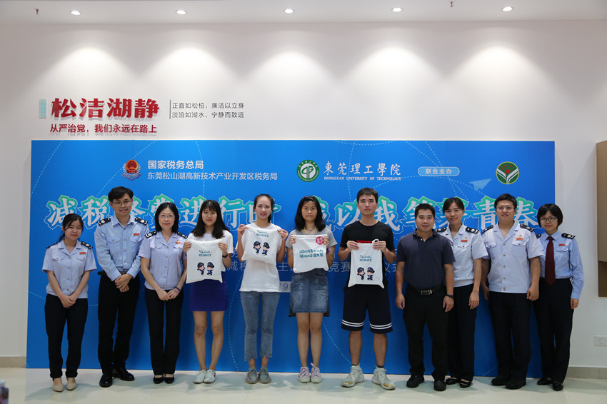 5月16日下午,获奖学生代表和教师代表受邀来到松山湖税务局,相关工作人员为同学们讲解税务局当前的工作服务现状、办理的相关业务、“减税降费”等政策,使得同学们对税务等相关业务有了更加清晰的了解。