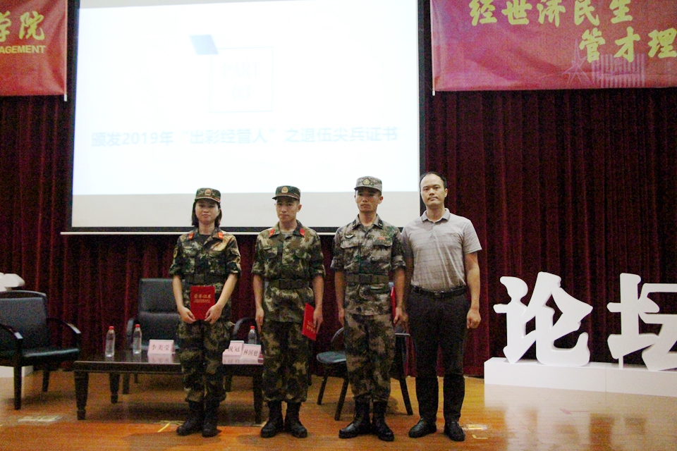 为增强青年学生的爱国主义教育,培育吃苦耐劳、团结自律精神,树立正确的人生观、价值观,yl88858永利集团于5月16日下午在莞城校区学术报告厅举办了“出彩经管人”系列活动之退伍尖兵军旅生涯分享会。经济与管理学院党总支副书记黄湘,全体辅导员及学生代表参加了此次活动。