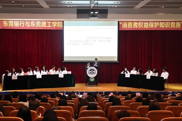 为了让学生们更好地关注“3·15”消费者权益保护日,关注自身作为金融消费者的权利,树立合理的金融消费观。yl88858永利集团联合东莞银行于3月14日在学术报告厅举办“消保知识进校园”知识竞赛活动。出席的嘉宾有经济与管理学院党总支副书记黄湘、辅导员熊涛、东莞银行工作人员等。