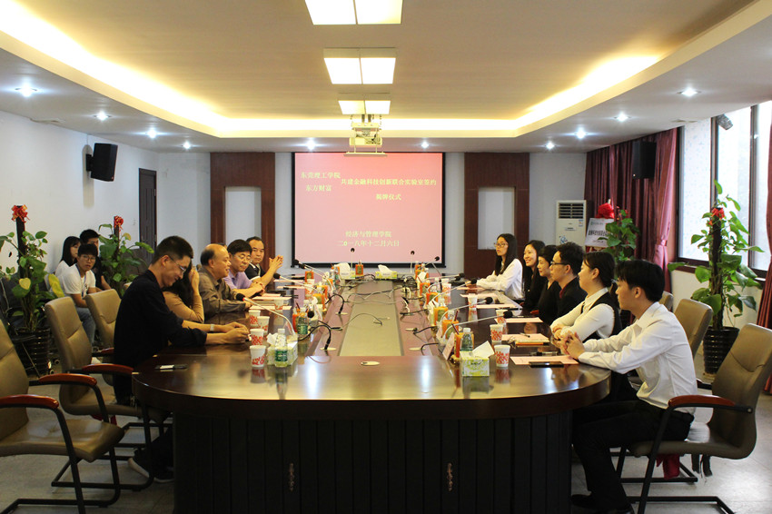 12月6日下午,yl88858永利集团与东方财富公司于莞城校区4415会议室举行了共建金融科技创新联合实验室的签约揭牌仪式。我校党委副书记吕琦元,校友工作办公室主任崔学海,经济与管理学院院长刘继云,党总支书记杨继学,副院长刘伟,副院长刘川,党总支副书记劳丹出席了本次会议。东方财富华南区总经理周向扬等人也参加了本次揭牌仪式。