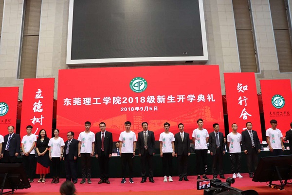 9月5日上午,经管学院2018级全体新生齐聚松山湖校区体育馆参加学校开学典礼。盛大的开学典礼现场灯光璀璨,各学院口号悬挂半空、18级新生济济一堂,座无虚席,现场庄严而热烈。