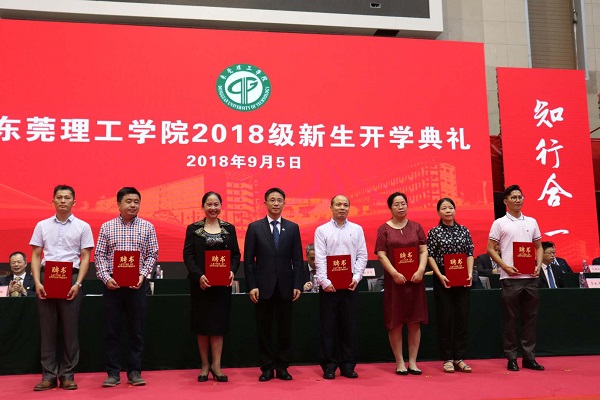 在开学典礼上,经管学院院长刘继云与其他学院院长一同为优秀新生代表佩戴校徽;经管学院两名新生现场获校领导颁发一万元新生奖学金。此外,经管学院优秀校友梅国兰、何奋也同时获聘2018级新生入学教育讲师团讲师。