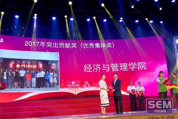 在表彰环节,校领导为经管学院颁发了优秀教学集体奖、为经管学院刘田、祝福冬、许桂华、张文清、莫晓红颁发了优秀教师称号。