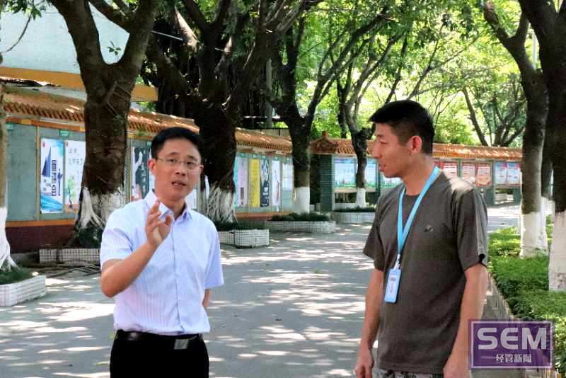 烈日当空,骄阳似火,成洪波书记亲临莞城校区审阅军训工作,提出学校应注重新生的身体状况,适时调整训练力度的建议,并与同学们亲切交流,了解学校宣传工作。而且,成书记在察看军训分数榜时为24连连续3天拿到流动红旗点赞,并与经管学院院长帅建华亲切交谈。