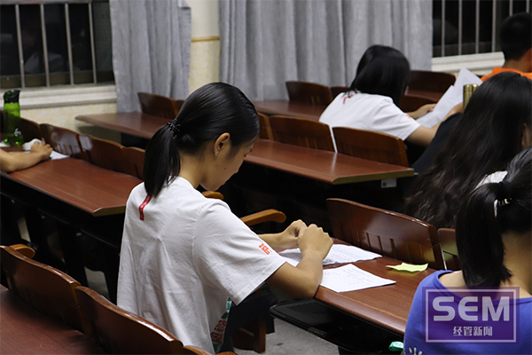 面试等候室里,等候的同学们都在为待会的面试认真的做准备,即使站在面试门外,也不忘嘴里重复着一遍遍的自我介绍,也有热心的助班为面试的同学们加油打气,提醒他们不要紧张。你以为面试场如同战场,气氛严肃而又严阵以待,其实不然,面试的课室里偶尔也会传出老师的哈哈大笑,被同学们忍俊不禁的回答逗笑。其实不管是国际班还是会计卓越班的面试,都主要考察学生的自我评价、口语表达以及应变能力,旨在选择适合全英教学的国际班学生以及适合高强度高压力环境的会计卓越班学生。