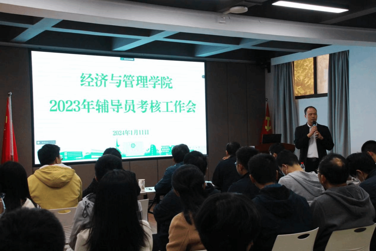2024年1月11日下午,经济与管理学院辅导员考核述职会议在莞城校区4520举行。经管学院领导班子、辅导员考核小组、班主任代表、全体辅导员以及学生代表出席了本次会议。本次大会由学院党委副书记黄湘主持。