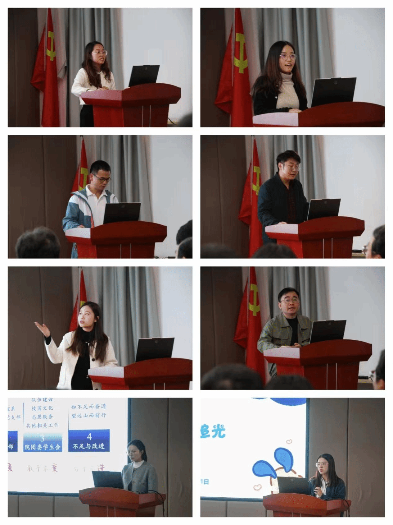 黄湘副书记介绍了考核规则、考核人员以及考核对象,说明了考核方向以“德能勤绩廉”五个方面为主,辅导员邓毅青、叶琦玮、刘欣颖、付小全、付中鑫、梁雅俐、熊涛、黄雅莉依次上台述职。各辅导员结合自身工作情况,从党建工作、人才培养、招生与就业、学风建设、yl9193永利集团、自我展望等多方面对一年的工作进行汇报,并通过可视化数据、图片等形式全面总结了工作成果。辅导员们在讲述一年中获得的成果的同时,也剖析了自身存在的不足和问题,并表达了对未来一年工作的规划及美好期待。最后,由在场人员及线上学生代表根据“德能勤绩廉”五个方面对八位辅导员进行评分。