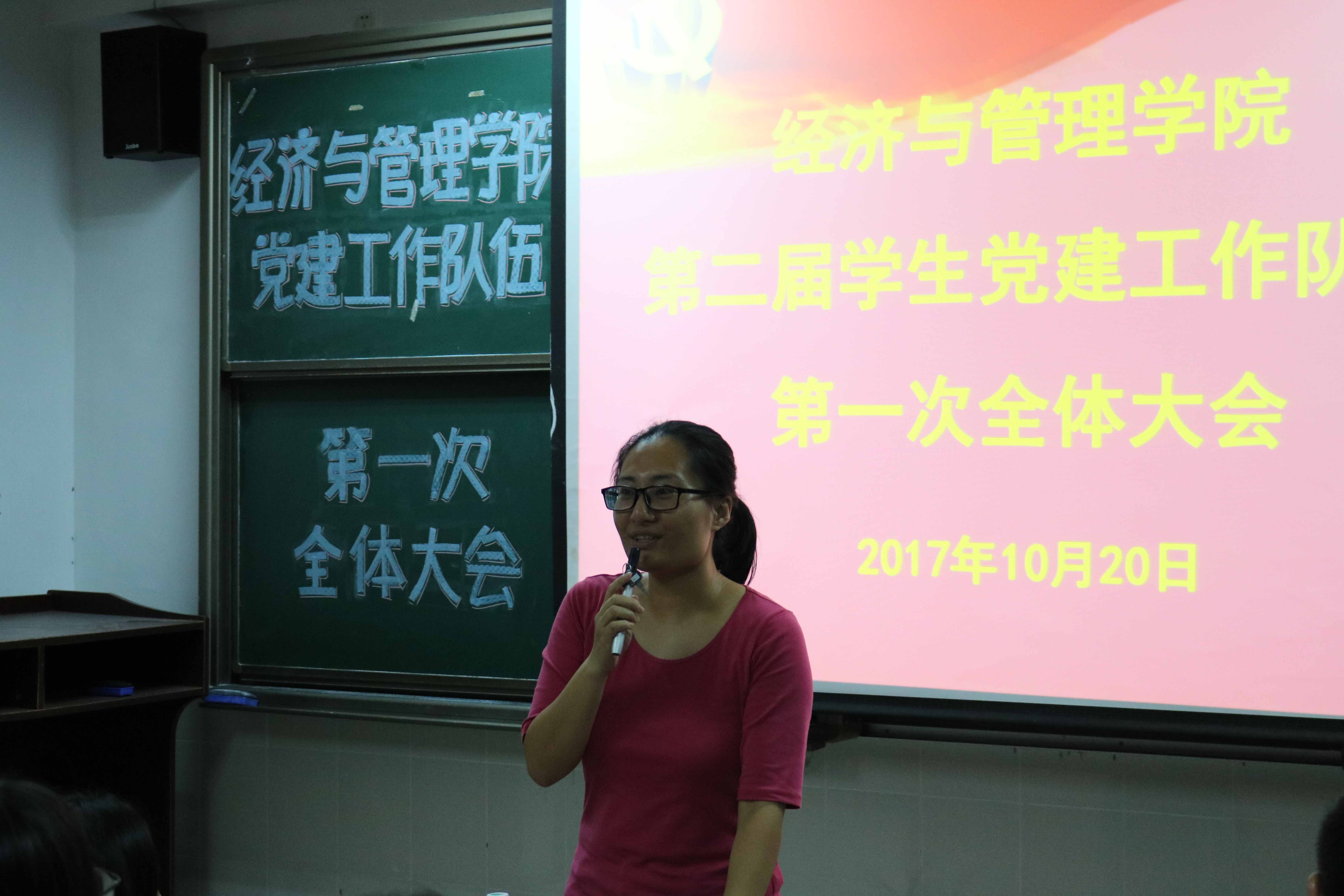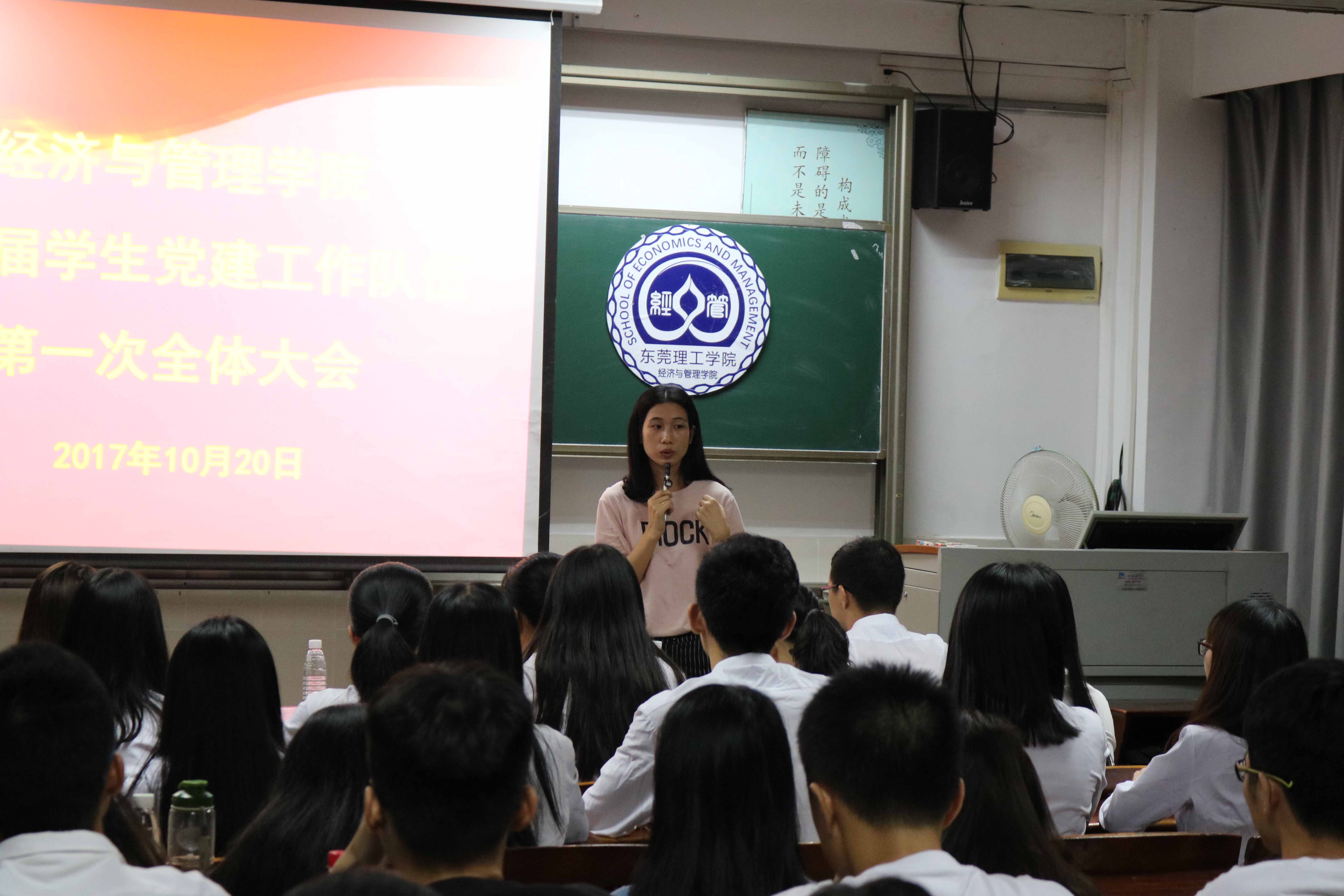 10月20日晚,经济与管理学院第二届学生党建工作队伍于莞城校区3408课室召开第一次全体大会,经济与管理学院党总支副书记劳丹,政治辅导员叶惠如出席会议。
