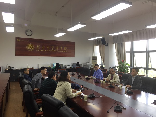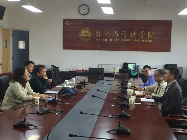 刘继云对王争光的到来表示了热烈的欢迎,和杨继学、刘伟一起介绍了经济与管理学院的师资队伍建设、近年来的科研成果、服务社会的工作情况,王争光表达了东莞市工商行政管理局未来和经济管理学院合作的意向,希望能将经管学院的科研力量与东莞市工商行政管理局的市场管理工作有机结合起来,对东莞市的市场主体发展情况进行梳理和总结,以便给各镇街提供更好的参考与服务价值,更好地指导未来的工作。刘继云对双方的合作表达了期待,并认为这种合作对双方来讲是资源整合、优势互补的良好模式。