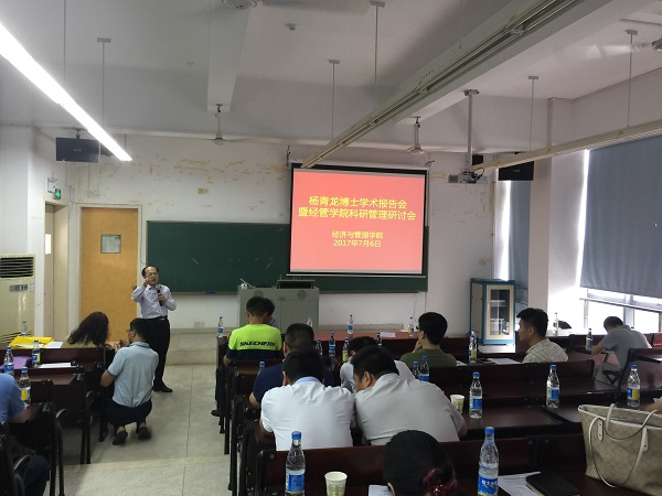 7月6日上午,yl88858永利集团在松山湖校区经管楼314举办杨青龙博士学术报告会暨经管学院科研管理研讨会,会议由帅建华副院长主持,刘继云院长、杨继学书记、刘伟副院长出席了本次会议,yl88858永利集团的教授、副教授、博士、青年教师参加了本次会议。