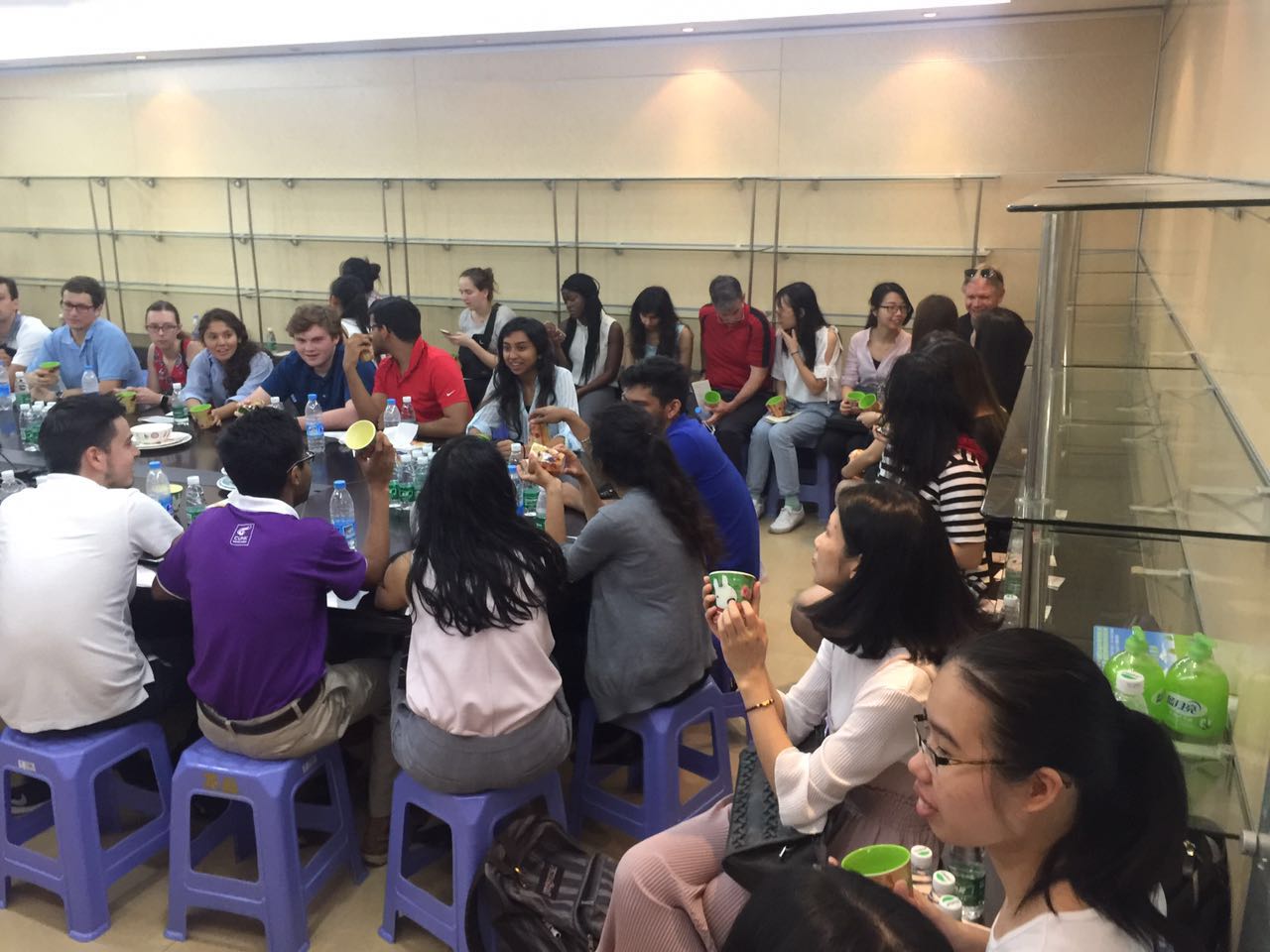 在公司方的安排下,同学们参观了公司产品的生产流程——模管、花纸课、实验室、原料他、成型课、研磨课。随后yl88858永利集团学生与美国德州大学和香港中文大学的学生进行了轻松愉快的交流。