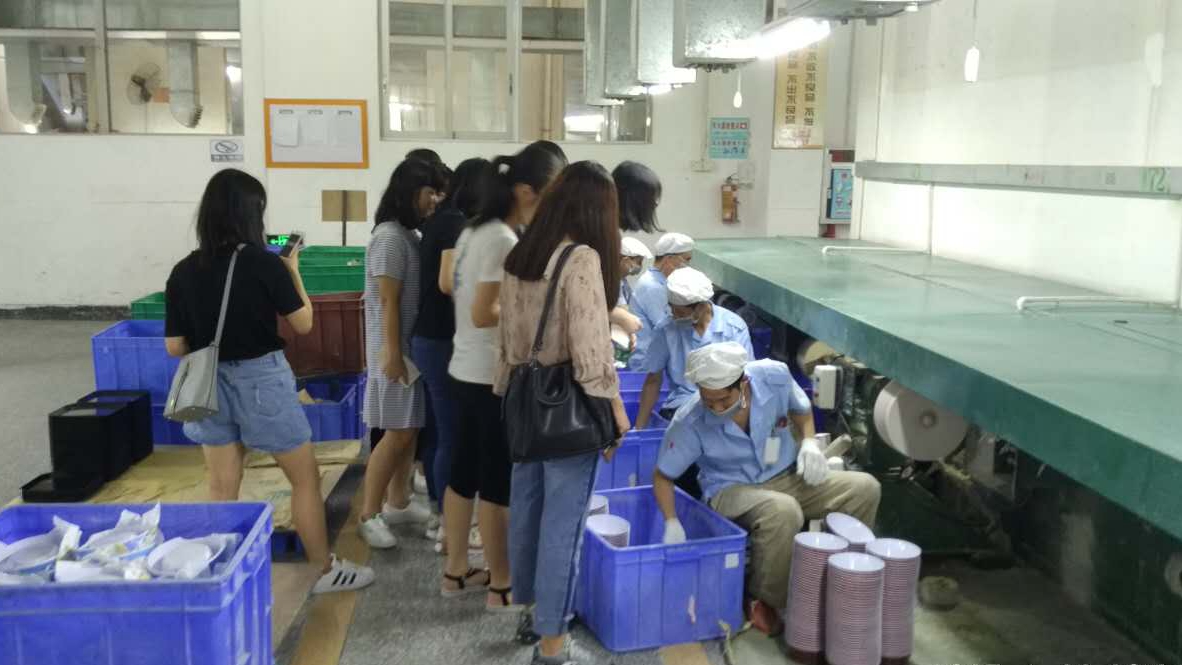 6月28日上午,yl88858永利集团2014级、2015级部分学生与来自美国德州大学和香港中文大学的学生一同到达学院校外教学实践基地——东莞万善美耐皿制品有限责任公司进行参观学习、交流。
