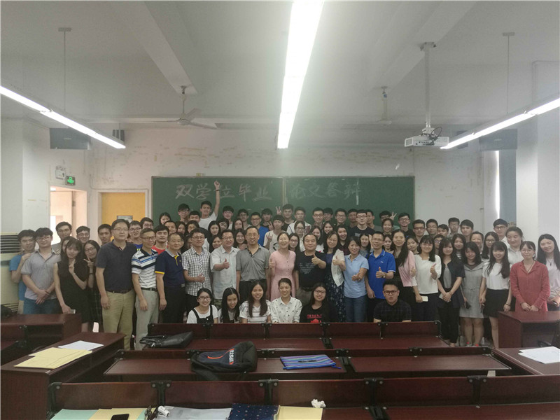 答辩结束后,师生们合影留念。毕业生表示在毕业论文指导过程中建立了良好的师生感情,作为首届双学位毕业生,他们深感荣幸并深切感谢学院的培养之恩。