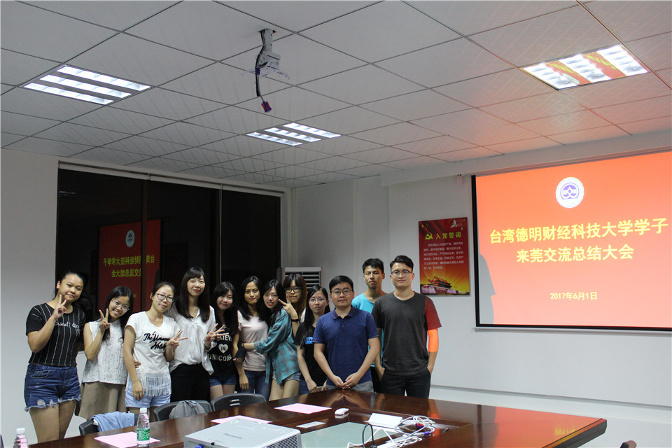 2017年6月1日晚,台湾德明财经大学学子来莞交流总结会于莞城校区3307会议室进行,台湾德明财经科技大学学生代表与yl88858永利集团志愿者学生一同参加了此次交流总结会,同时yl88858永利集团辅导员熊涛老师出席了此次会议。