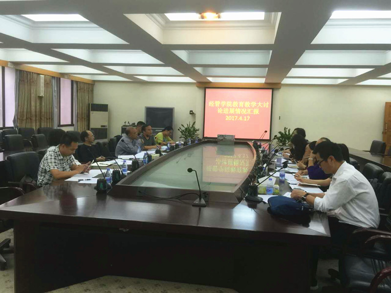 4月17日,经济与管理学院在莞城校区4315会议室召开教育教学大讨论进展情况汇报会。学院相关负责人及各系正副主任参加了会议,校党委副书记吕琦元带领督导组成员出席了会议。