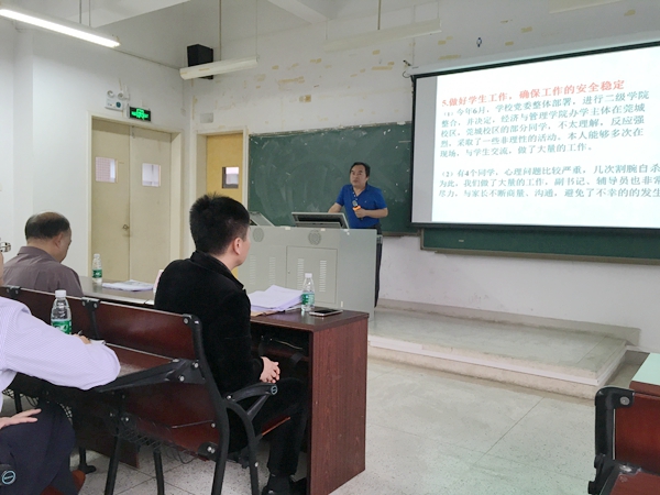 考核会上,经济与管理学院院长刘继云、党总支书记杨继学、副院长刘伟及党总支副书记劳丹先后上台,对2016年经管学院的工作及个人工作进行了总结汇报。
