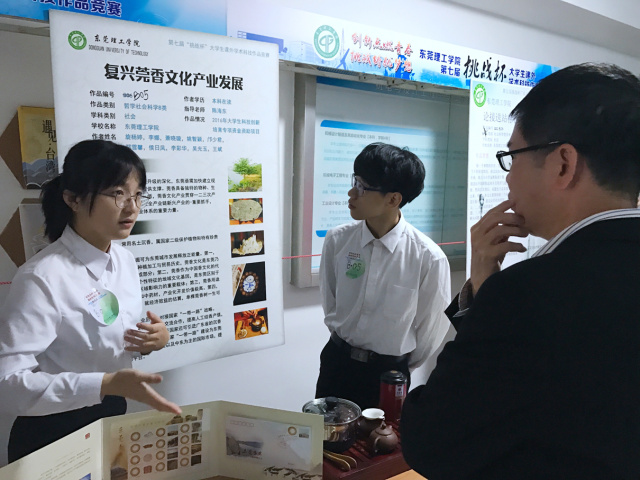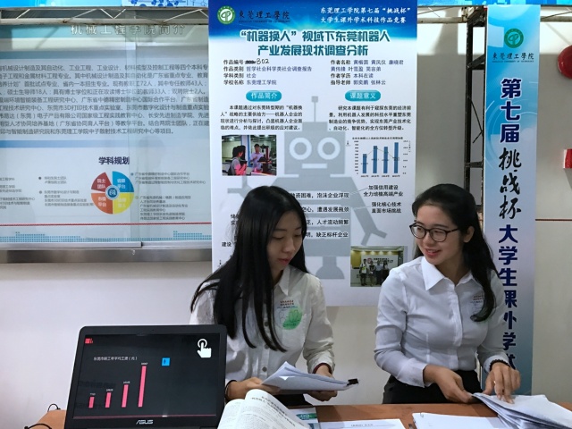 此次,经济与管理学院有5个参赛队伍的作品亮相校赛现场,分别是南国红豆如何“红”——基于东莞市粤剧如何走出发展困境、复兴莞香文化产业发展调查报告、“机器换人”视野下东莞机器产业发展现状调查分析、广东特色农村经济发展分析——以树脚村为例,以及在校大学生参与个人网络募捐员调查研究——以东莞市四所高校为例。