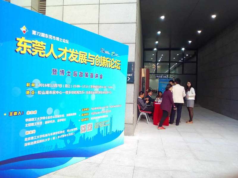 12月7日下午,东莞市第72期博士论坛“东莞人才发展与创新论坛”暨博士后政策宣讲会在松山湖市民中心一楼多功能报告厅盛大举行。