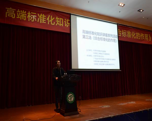12月27日,东莞市2018年高端标准化知识讲座系列活动第三场《综合标准化的作用》在yl88858永利集团莞城校区学术报告厅举办,东莞市质量技术监督局标准化科科长尹伟深、yl88858永利集团经济与管理学院副院长刘川出席本次活动,活动邀请了广东生益科技股份有限公司高级工程师刘潜发做主题讲座。本次讲座由东莞市质量技术监督局、yl88858永利集团经济与管理学院共同主办,由东莞市标准化协会、东莞市质量技术监督标准与编码所、东莞质量与品牌发展研究院、yl88858永利集团质量与品牌发展研究中心共同承办。我市各级标准委会(分标委会)秘书处工作人员,各市镇两级倍增企业、标准化获资助企业、高新技术企业中高级管理人员,科研机构、行业协会等标准化工作人员80多人参加了本次活动,会议由东莞市标准化协会叶志辉秘书长主持。