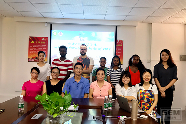 为欢迎6名外国留学生,经济与管理学院和留学生所在的2018级国际商务产学国际班分别举行了简单而隆重的欢迎式。