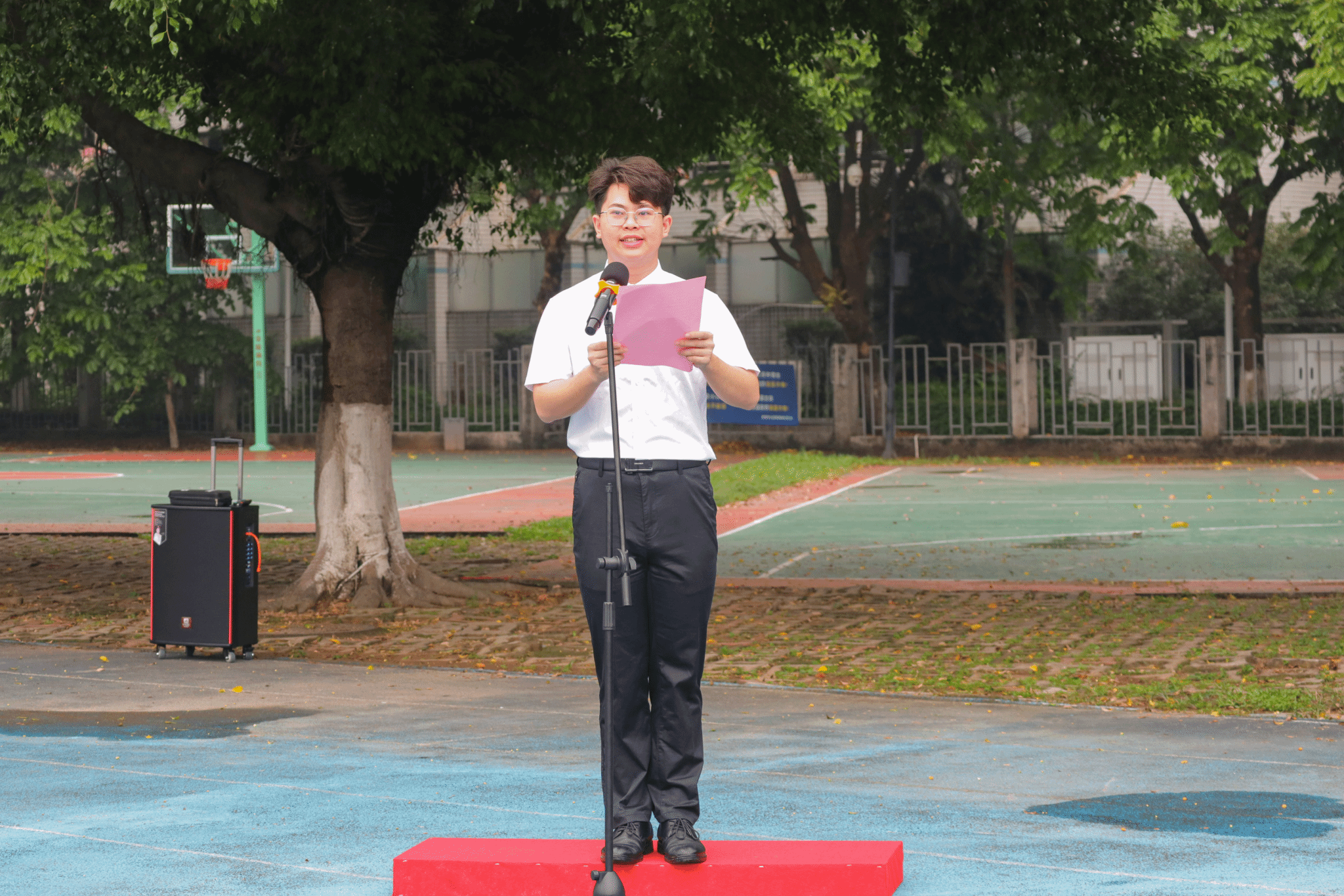 升旗过后,经济与管理学院2022级人力资源管理2班的邱耀城同学登上了莞工青年说的舞台。在国旗下,他将自我成长与红色文化紧密结合,为我们进行关于“传承五四精神,担当青年重任”的感悟分享。邱耀城同学通过引用中国农民运动领袖彭湃的事迹,以及他到汕尾调研和参加学校“攀登计划”过程中的难忘经历,论述了理想信念的火种一经点燃,就会产生巨大的精神力量的道理。邱耀城同学表示,在参与众多红色文化活动的过程中,他对红色文化的认同感和自豪感不断增强,进一步激励了他强国的信心。最后,邱耀城同学呼吁莞工学子们要坚守、传承和践行伟大的五四精神,在红色故事的学习教育中汲取奋进力量,积极投身于百千万工程的建设中。