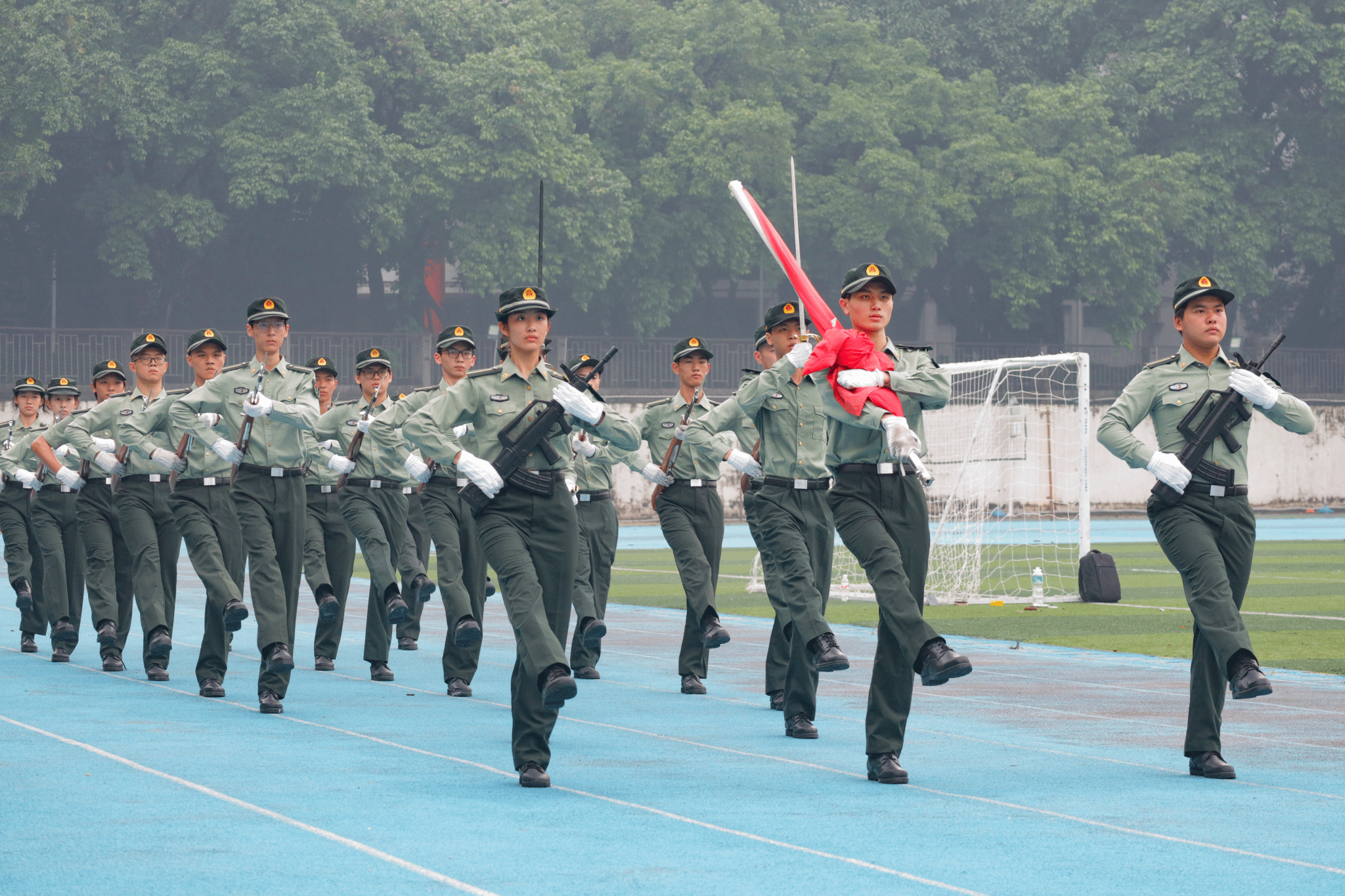 5月6日上午,yl88858永利集团莞城校区举行升旗仪式。莞城校区党委学研工部、团委、知行学院、二级学院yl9193永利集团负责人、辅导员及经济与管理学院2023级全体同学参加本次仪式。在全体师生的注目下,国旗护卫队身着戎装,踏着有力的步伐护送国旗入场。伴随着国歌响起,全场肃立行注目礼,五星红旗在朝阳中冉冉升起,迎风飘扬。