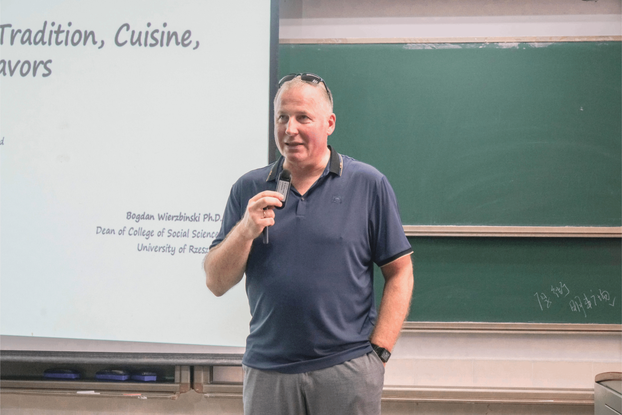 紧接着,9月12日下午,第二场讲座以“波兰美食文化的探索”为主题再次吸引了约一百名同学的热情参与。Bogdan博士再次登台,为师生们带来了一场关于波兰美食文化的精彩分享。