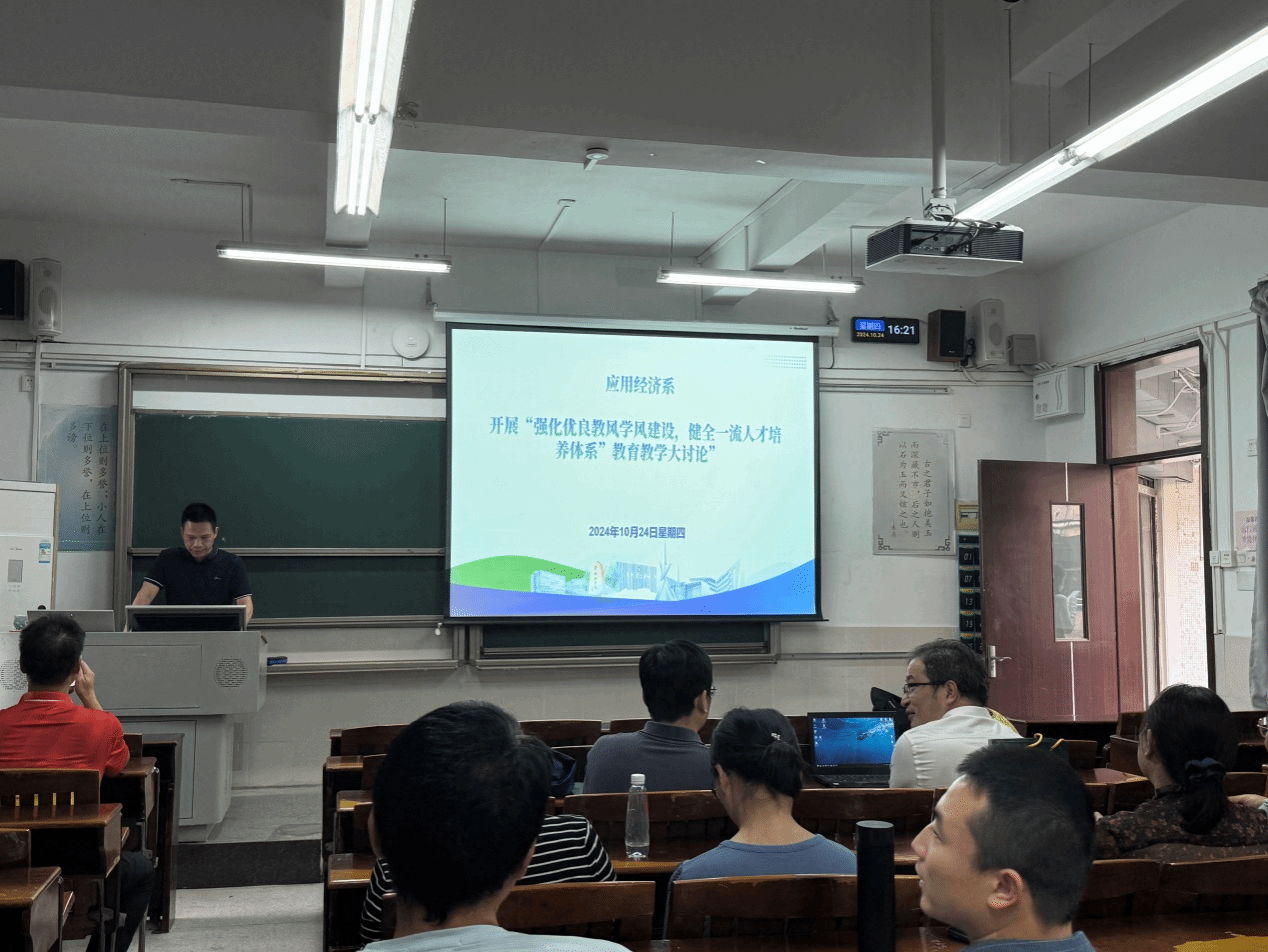 10月24日下午,应用经济系举办了一场旨在“强化优良教风学风建设,健全一流人才培养体系”的教育教学大讨论。全系教师齐聚一堂,围绕专业建设方向、实践教学强化、产教融合推进、教师教学能力提升以及本科教育yl7703永利集团质量标准、人才培养方案修订等展开了深入探讨。