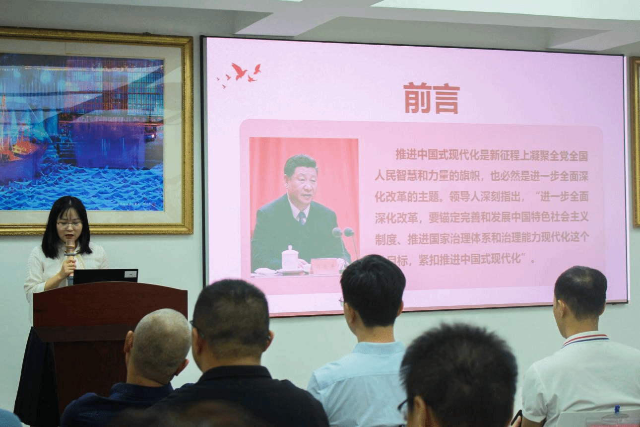 会议伊始,王珊珊围绕改革与中国式现代化的关系以及如何推进改革进行深入阐述。她指出,改革开放以来的实践表明改革是中国特色社会主义发展的关键驱动,对强国与民族复兴意义重大。改革开放以来党的历届三中全会皆以改革为中心,彰显了我们推进改革的坚定决心,实践也证明改革是中国式现代化的发展动力。同时,中国式现代化也为改革明确方向,二者相互成就,助力国家发展。