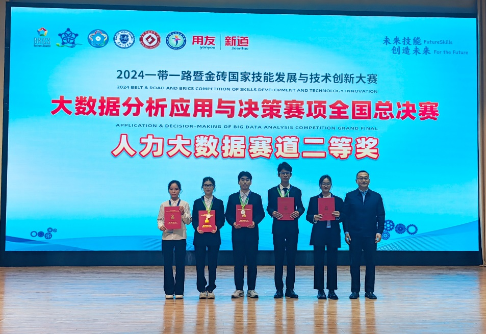 2024年11月10日,2024一带一路暨金砖国家技能发展与技术创新大赛大数据分析应用与决策赛项全国总决赛落下帷幕。来自全国30个省、市、自治区,115支本科队伍、96支高职队伍、65支中职队伍、65名教职工参加了大赛。由yl88858永利集团学生组成的yl88858永利集团第2队创下完美战绩,斩获2024一带一路暨金砖国家技能发展与技术创新大赛大数据分析应用与决策赛项全国总决赛本科组人力大数据赛道二等奖。