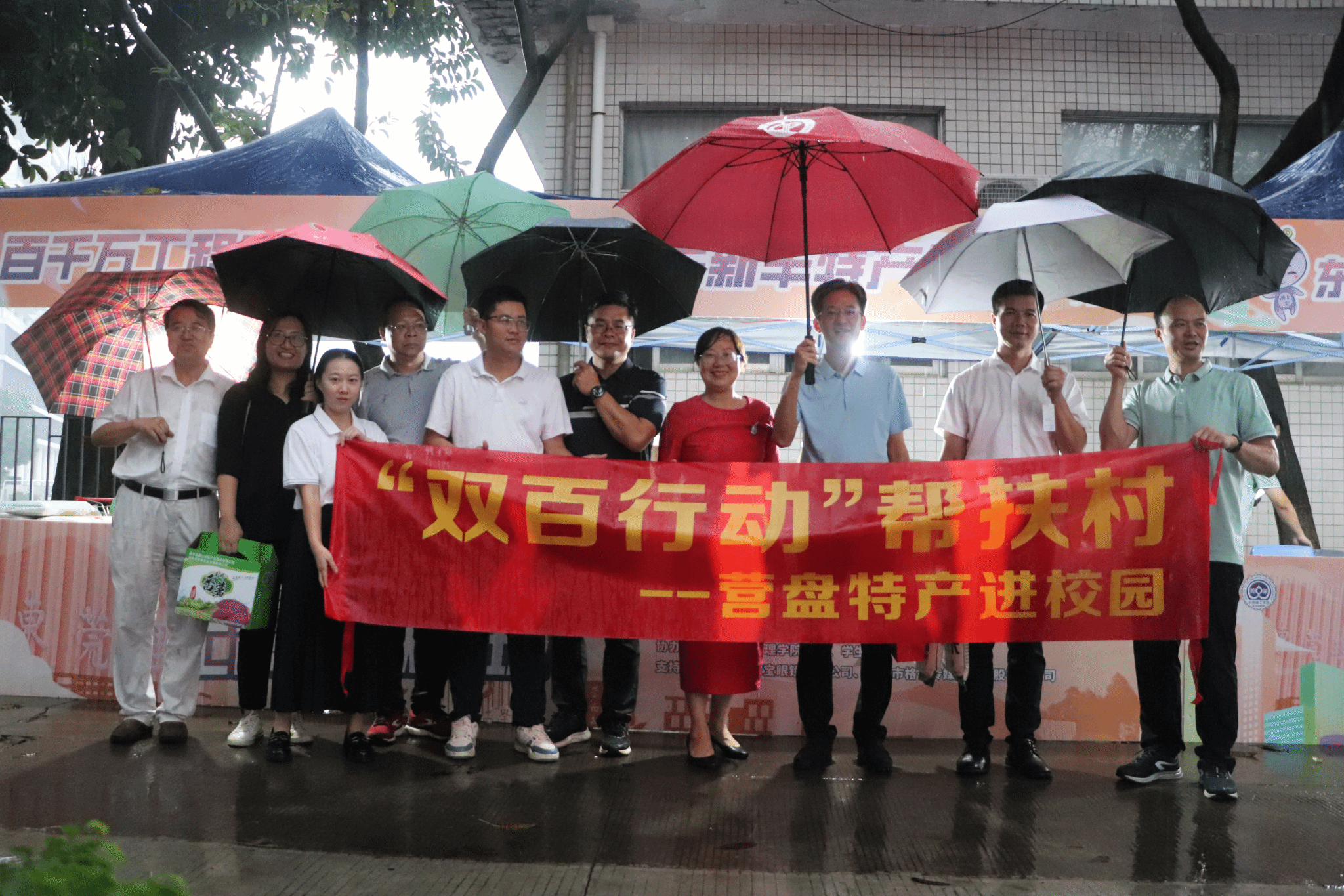 本届工模活动紧密结合广东高质量发展的“头号工程”“百千万工程”,以及学校重点工作,积极深化推进“双百行动”。活动筹备阶段,经济与管理学院与校审计工作部积极与对口帮扶村——营盘村进行对接,并邀请韶关市新丰县黄礤镇营盘村党支部书记钟仙甫带队参加工模活动。这不仅为营盘村提供了一个展示和销售特色农产品的平台,也进一步推动了“双百行动”的落实。