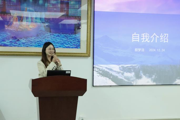 新进会计学老师颜梦洁上台进行自我介绍。颜梦洁本科毕业于湖南大学,拥有中国人民大学公共政策专业的博士学位。曾深入研究政府间财政关系、财政可持续性和税制改革等课题并取得丰硕的研究成果。她表示将积极向各位前辈学习,不断精进教学、科研能力,努力为学校“冲博”“更大”贡献力量。
