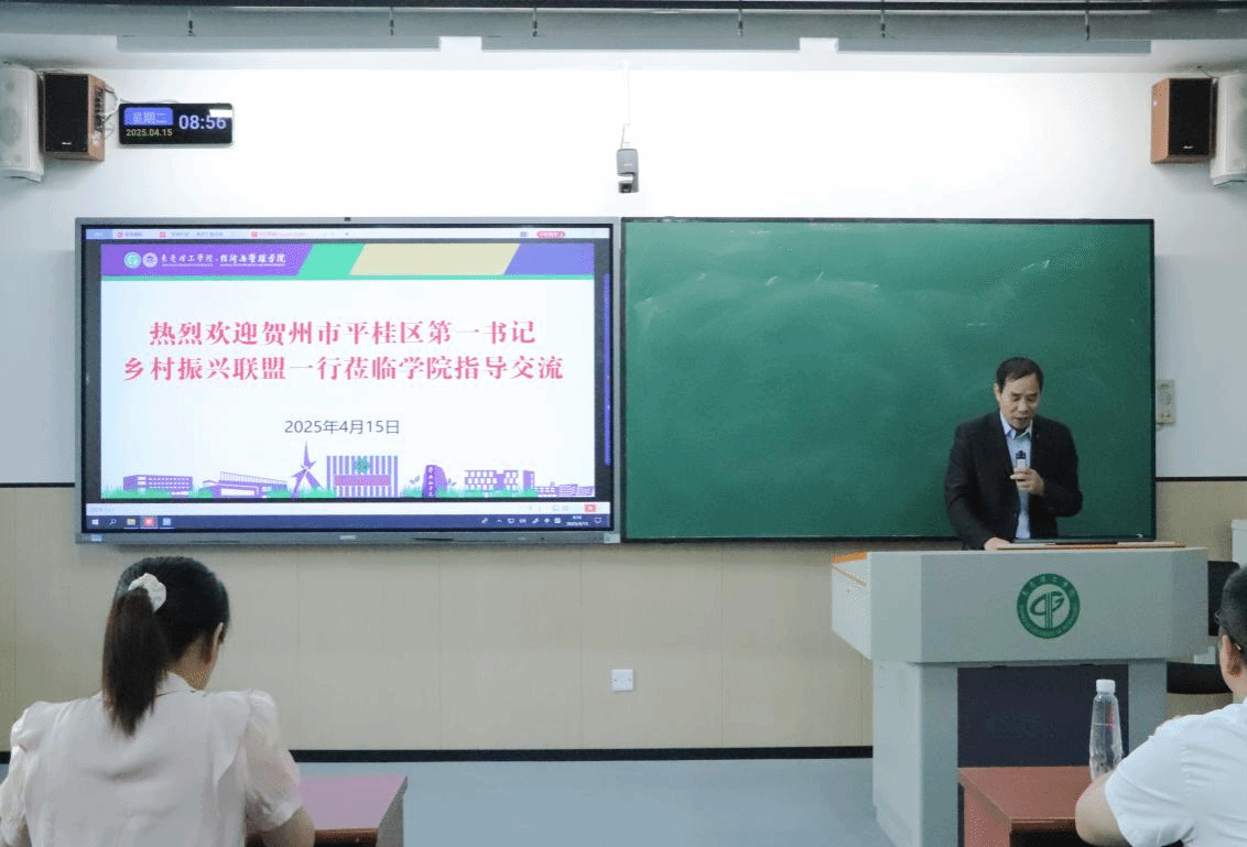 2025年4月15日,广西壮族自治区贺州市平桂区第一书记乡村振兴联盟调研组莅临我校交流。经济与管理学院于莞城校区1311教室举办“直播助农经验分享”座谈会,学院副院长刘川、黎伟,直播助农指导老师欧阳波,平桂区委组织部副部长王志惠等出席会议。