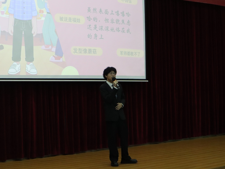紧接着,选手们依次登台演讲,从多元角度阐述心理健康的重要性。前五名选手演讲完毕后,比赛进入中场休息环节,现场播放心理健康主题视频,帮助选手和观众们放松心情、调整状态。视频播放结束,后六名选手接续上台,通过结合社会现象、心理学理论等,进一步表达个人对维护心理健康的见解,引发现场观众的共鸣和思考。