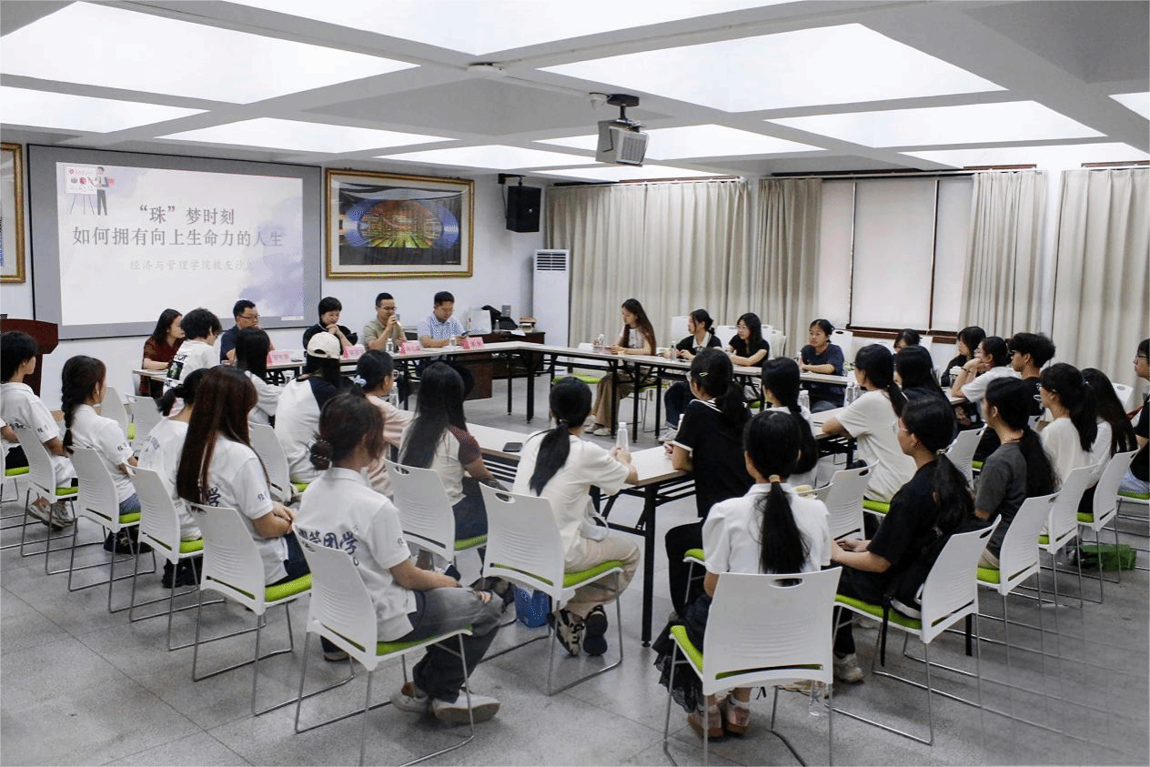 在交流环节中,陈萱芸师姐与杨志成师兄就同学们的提问进行解答。陈萱芸师姐结合自身经历,针对大学生活规划、职业选择等方面提供建议;杨志成师兄则鼓励同学们勇敢迈出第一步,在参与校园活动中提升自我。