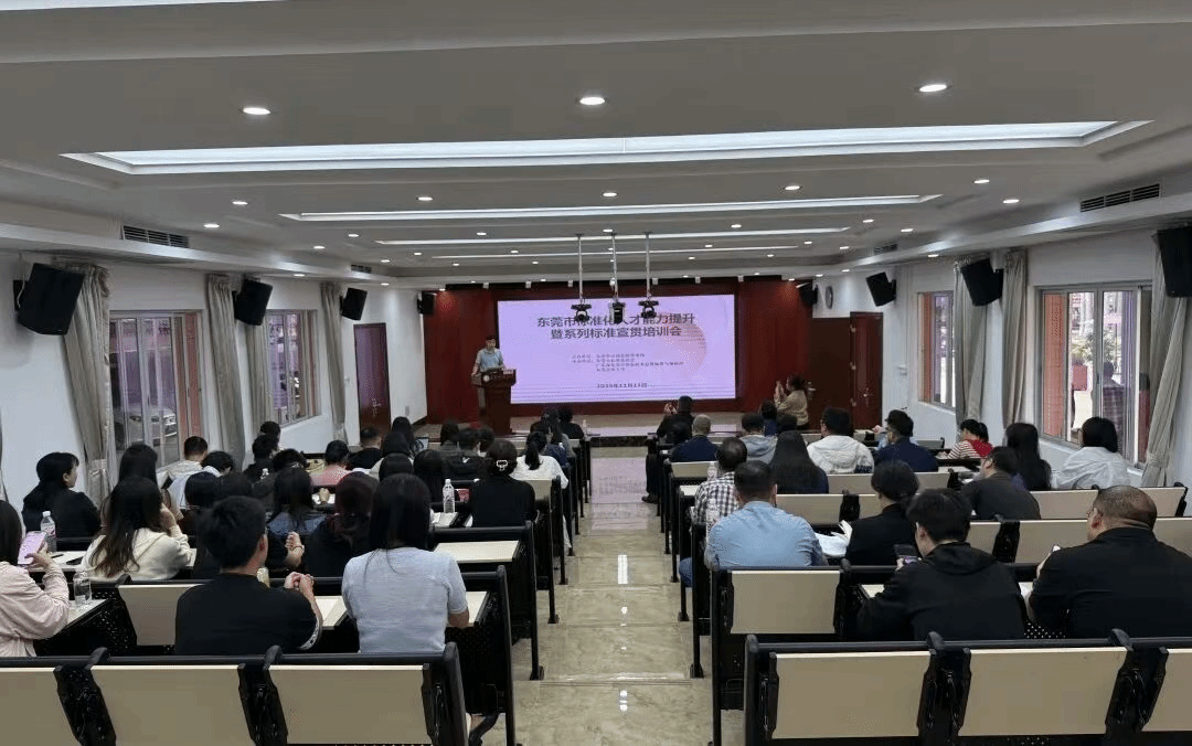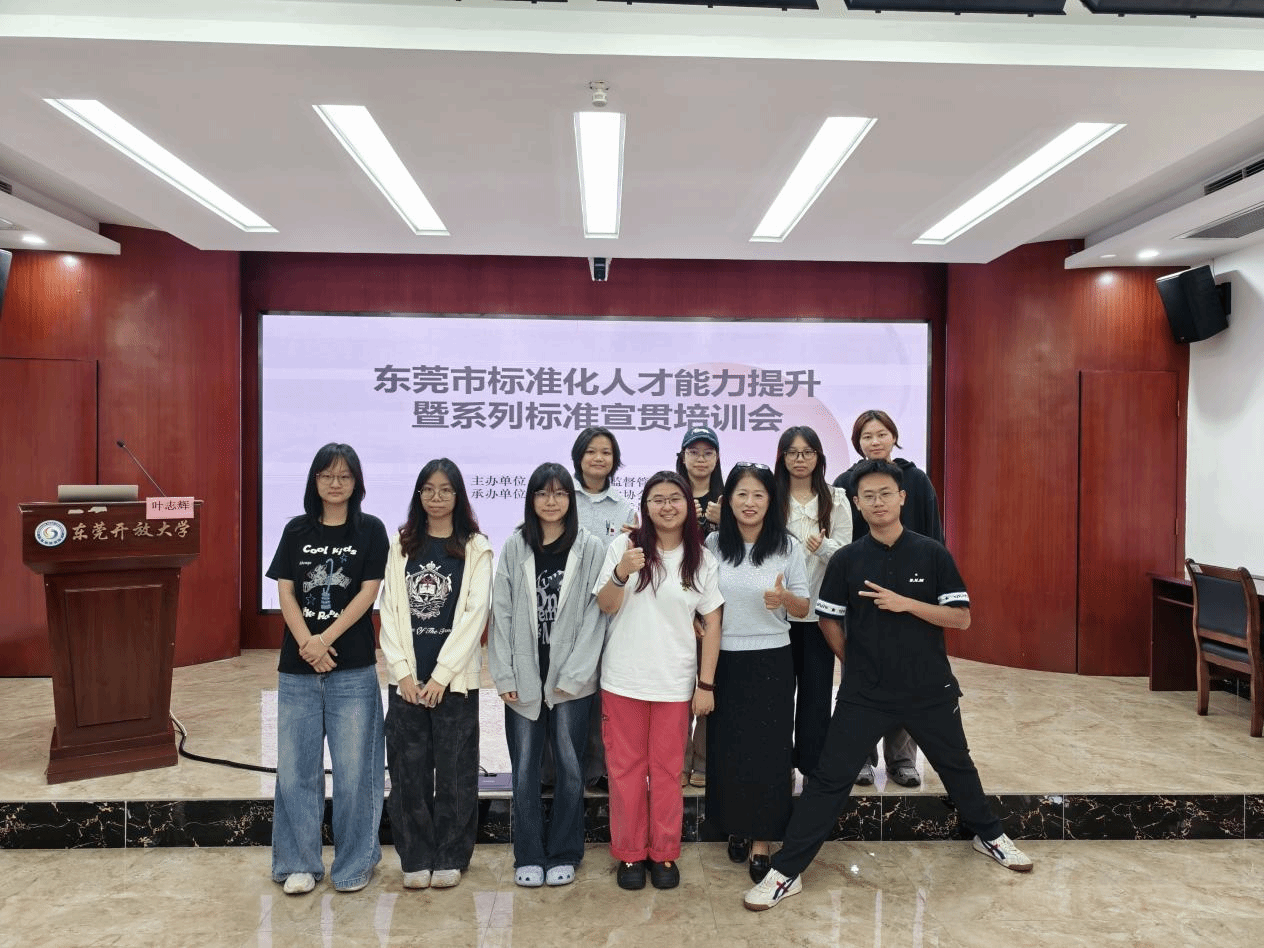 11月11日,yl88858永利集团管理工程系副主任金凤花老师携2022级、2023级质量管理工程专业数十名学生,作为高校学生代表,参加了由东莞市市场监督管理局主办,东莞市标准化协会和广东省东莞市质量技术监督标准与编码所共同承办的“东莞市标准化人才能力提升暨系列标准宣贯培训会——东莞市标准化能力(实务人才)培训班”。