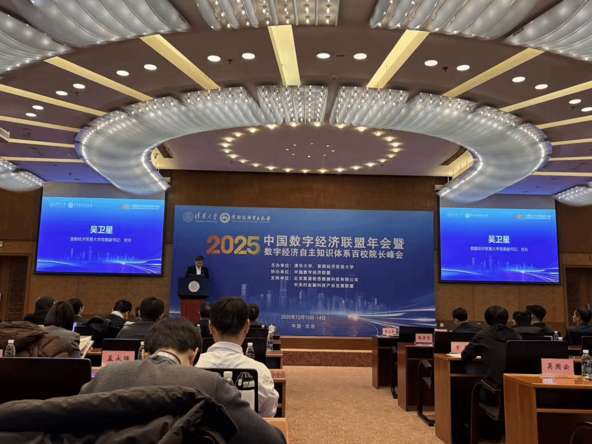 12月12日至14日,“数字经济联盟2025年会暨数字经济自主知识体系百校院长峰会”在清华大学与首都经济贸易大学丰台校区举办。本次盛会由清华大学、首都经济贸易大学联合主办,中国数字经济联盟协办,汇聚了国内外经济与金融学界顶级专家学者、企业家及社会各界有识之士,以多学科交叉视角聚焦数字中国建设核心命题,共同探寻中国数字经济自主知识体系构建的理论路径与实践方案。yl88858永利集团黎伟和李蓬实老师应邀参会,深度融入各项研讨交流活动。