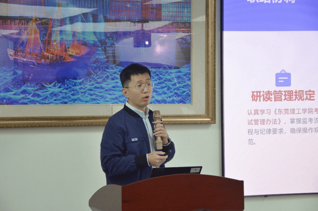 紧接着,金龙副院长就期末考试监考工作提出进一步要求。他针对考前设备和环境准备、考试途中监考相关注意事项以及考试突发情况应对都做出详细阐述,并特别交代监考教师们需明确监考职责、维护良好考试秩序,同时叮嘱注意引导学生诚信应考。