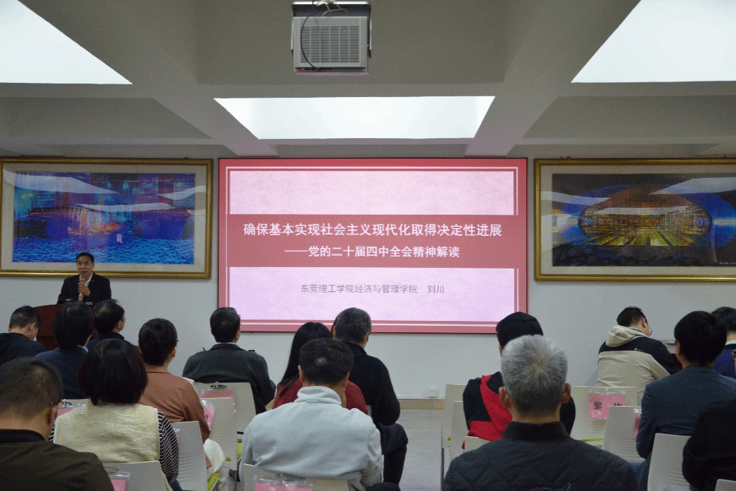 12月25日下午,学院在莞城校区4416教室举办“学习贯彻党的二十届四中全会精神”系列讲座第二讲,特邀市委宣讲团成员、学院副院长刘川作专题辅导报告。学院全体教职工参加学习。