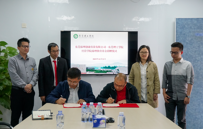 11月21日,经管学院校友企业——东莞臻理创业投资有限公司,向我校经济与管理学院捐赠50万元,用于设立“经管学院臻理教育基金”。该基金主要用于支持经管学院学生培养、师资建设,推动产学研项目合作及学院发展等方面。捐赠仪式在学校松山湖校区举行,东莞臻理创业投资有限公司总经理赖庆强、校基金会办公室主任崔学海及经管学院副院长刘川等出席了捐赠仪式。