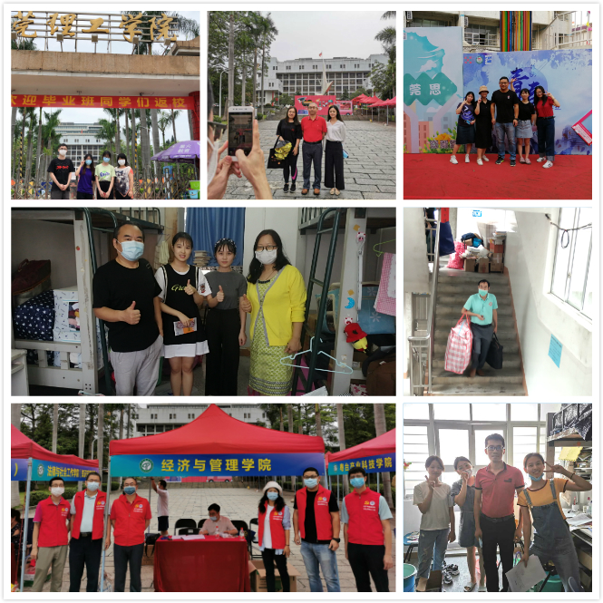 5月23日,第二批返校毕业生回到了阔别近半年的校园,校园依旧,景物依旧,老师依旧,经管学院29名教工返校迎接毕业生,交流合影、宿舍探访、助力搬运……一片和谐,同学们见到了思念已久的老师们,念师恩、话家常,敞开了心扉,老师们也乘机交待,“以后的路要靠同学们自己走了,学校、老师是你们温暖的港湾,有空常回家看看”。“记得填报就业信息!”特殊的毕业季,师生感情更为突显,温暖流淌在校园之中。