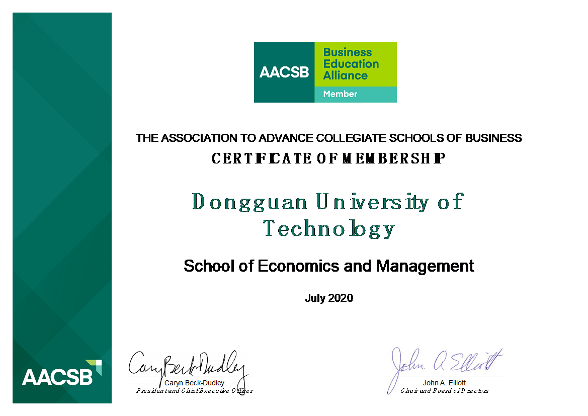 2020年7月,国际商学院协会(AACSB, the Association to Advance Collegiate Schools of Business)发来信函和会员证书,正式通过我校经济与管理学院的会员资格,标志着经济与管理学院已被国际商学院协会认可,并享有正式会员的所有权益。