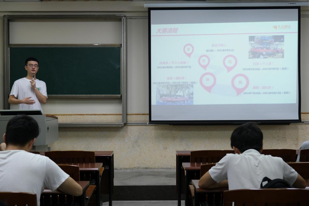 随后,刘文渊老师向同学们介绍了本次比赛的规则和赛程安排,还鼓励同学们应该积极参与比赛和动员身边的同学一起参加。