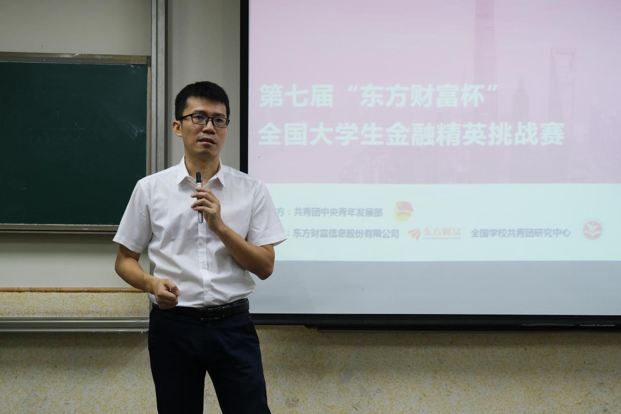 黎伟副院长首先发表讲话。他谈到此次比赛是一次极佳的参赛机会,也是一次很好的锻炼自身的机会。同时他还强调,作为经管学子,更应该努力培养自己的综合素质能力,将所学知识应用于实践之中,提高自身财富管理能力。