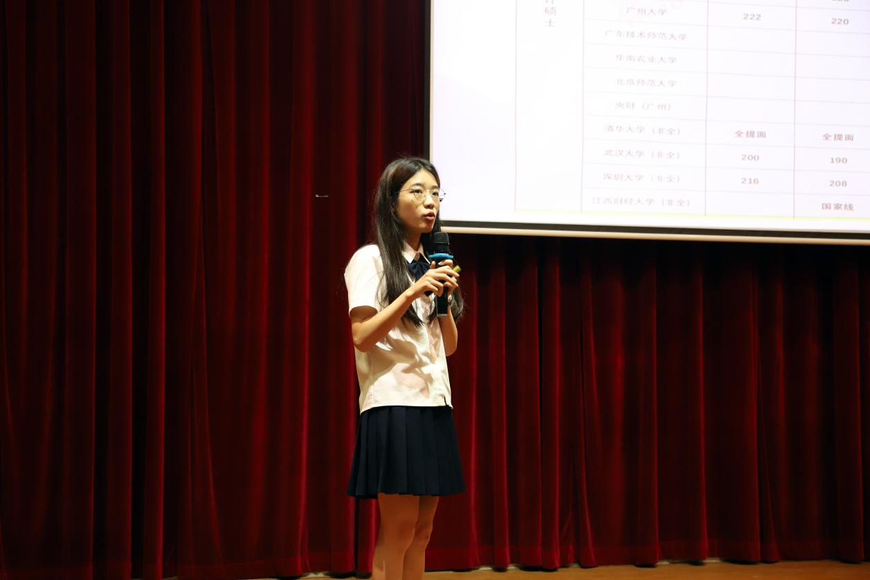 陈仁浩师兄于今年顺利考取南京大学研究生。他从考研的整体情况分析、备考心路历程、相关学科的复习建议等方面与大家分享了他的考研经历。陈春颜师姐今年顺利被华南师范大学应用心理专业录取,陈师姐详细介绍了精加工策略法和组织策略法,鼓励同学们要做一个充满希望、积极乐观的人,在备考中要及时调整心态,坚定考研目标。邵敏师姐于今年顺利考取广州大学会计专业研究生,她从院校分析引入话题,鼓励同学们可以多报考新设院校,同时邵师姐还指出模拟面试能够对知识进行查漏补缺,减少紧张感。曾宝仪师姐今年顺利被香港浸会大学传媒管理专业录取,她提出绩点是留学的王道,鼓励同学们要认真学习,提高绩点。