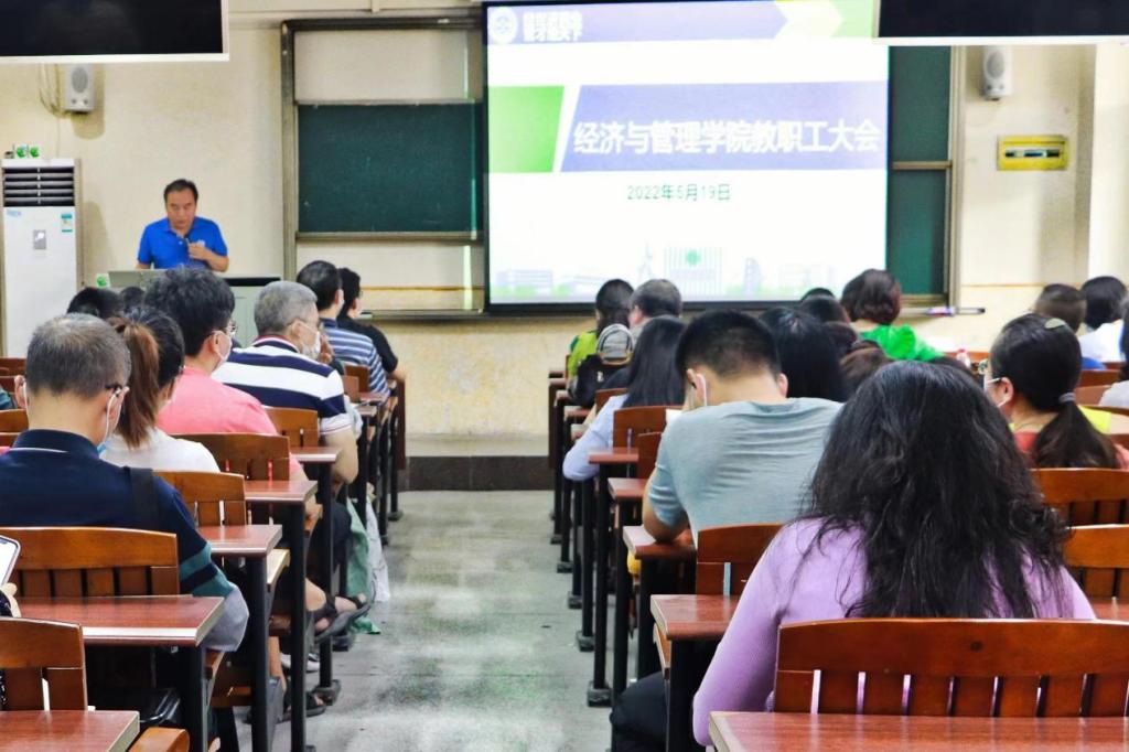 5月19日,经济与管理学院全体教职工大会于莞城校区3309课室顺利召开,学院党委书记杨继学主持会议。