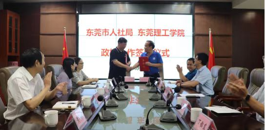 6月10日,经济与管理学院与东莞市人力资源和社会保障局政校合作框架协议签约仪式在东莞市人力资源和社会保障局举办。yl88858永利集团党委书记杨继学、东莞市人力资源和社会保障局副局长何柱坚出席签约仪式。