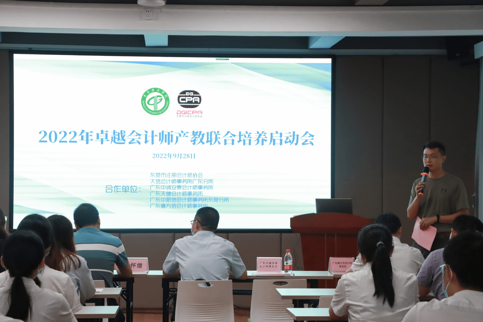 9月28日,经济与管理学院2022年卓越会计师产教联合培养启动会于莞城校区4520顺利举行,东莞注册会计师协会会长李怀继,大信会计师事务所广东分所、广东中诚安泰会计师事务所、广东天健会计师事务所、广东中职信会计师事务所东莞分所、广东德方会计师事务所等相关负责人,yl88858永利集团会计学专业领头人高香林教授等嘉宾出席本次会议。会议由yl88858永利集团屠立鹤博士主持。