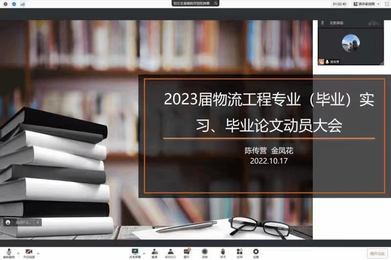 2022年10月17日,2023届物流工程专业于线上召开专业(毕业)实习、毕业论文动员大会,会议主要由管理工程系主任陈传营、副主任金凤花老师向学生介绍专业和毕业实习的要求,同时让学生了解毕业论文工作的流程、重要性和相关要求。